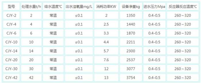 待處理的水由除氧泵輸送至引射器,水以一定流速通過引射器時(shí),形成一定的負(fù)壓,將無氧氣體吸入。水與無氧氣體在混合管中充分混合,然后進(jìn)入解析器,水中溶解的氧在解析系統(tǒng)中擴(kuò)散到無氧氣體中。帶氧氣體自解析器頂部進(jìn)入氣水分離器,經(jīng)氣水分離器脫水后進(jìn)入換熱器升溫至60~80℃左右,進(jìn)入加熱器,然后進(jìn)入反應(yīng)器,與反應(yīng)器中的還原劑反應(yīng)后重新成為無氧氣體,再進(jìn)入下一個(gè)循環(huán),從而達(dá)到連續(xù)工作的除氧目的。