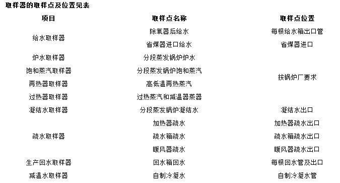 Ⅳ、鍋爐給水取樣冷卻器的取樣點(diǎn)及位置見(jiàn)表: