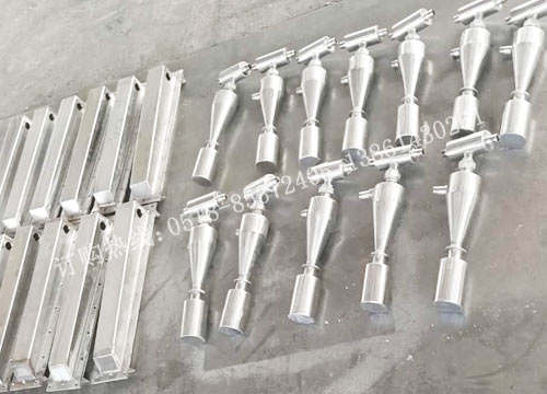 2、分離器——將飛灰和氣體分離,飛灰因重力作用被旋轉(zhuǎn)氣流甩到器壁,再靠重力作用,落入集粉器。分離后的氣體至上而下沿器壁下旋至底部,再沿中間路線上升至頂部,從頂部出氣口排出,實現(xiàn)固、氣的分離。