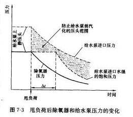 圖7-3所示為甩負(fù)荷后除氣器和給水泵進(jìn)口(吸人側(cè))壓力的變化情況。